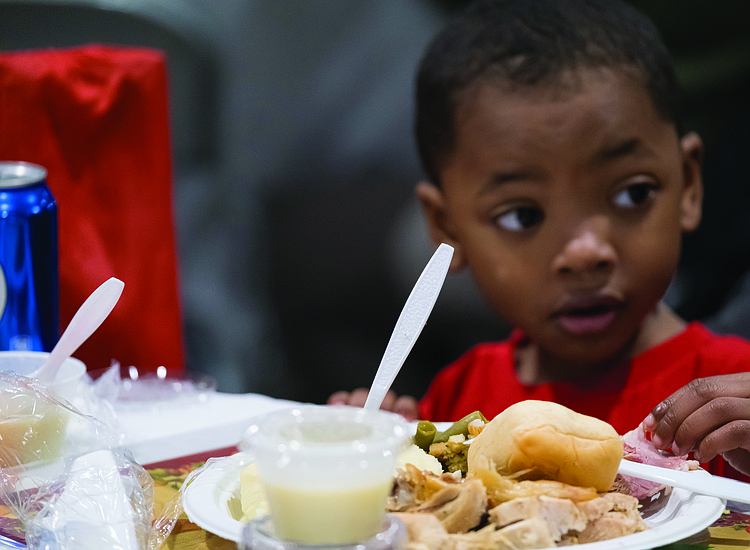 Aiden Sales enjoys a Thanksgiving meal at The Giving Heart’s 20th annual Thanksgiving Day Feast at the Greater Richmond Convention Center. Sandra Sellars/Richmond Free Press