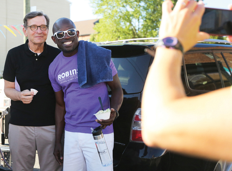Todd B. Waldo, right, former president of the Robinson Theater Community Arts Center board, pauses for a photo with William “Bill” Martin during the “In the Sun Again Community Block Party” on June 14, 2019. (photo by Regina H. Boone/Richmond Free Press)
