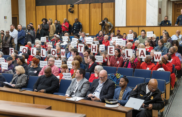 “The need is urgent and growing,” RISC Co-President Marvin Gilliam said as dozens of RISC members sitting in Council Chambers held signs urging officials to “Follow the Law.” “This tool works when funded faithfully.”