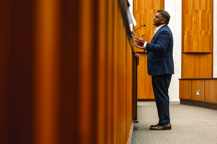 Mayor Danny Avula speaks to Richmond City Council about his proposal to fund the city’s Affordable Housing Trust Fund during the Organizational Development Committee meeting at City Hall on Monday, Feb. 2. (Julianne Tripp Hillian/Richmond Free Press)