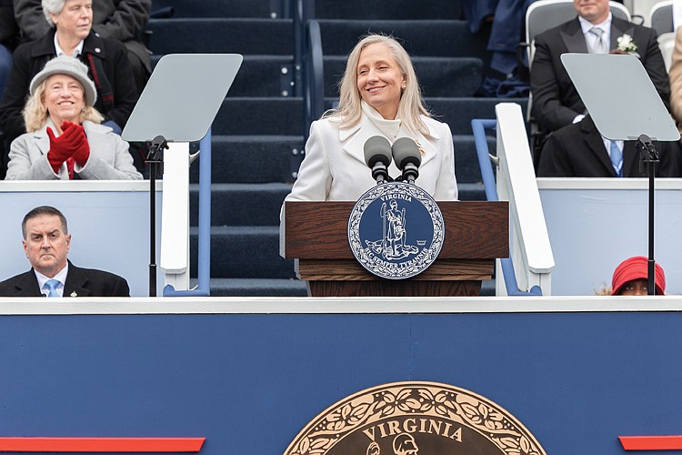 Gov. Abigail Spanberger delivers her inaugural address as Virginia’s 75th governor Saturday, Jan. 17, at the state Capitol in Richmond. The first woman to hold the office, Spanberger outlined her administration’s priorities, including affordability, advancing public schools and public safety, while calling on Virginians to work together to “write the next chapter” of the Commonwealth’s history. Julianne Tripp Hillian/Richmond Free Press
