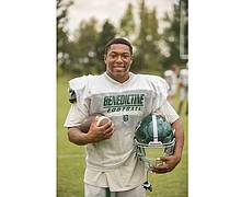 Caleb Grimes is planning a career in the Navy. In the meantime, he’s giving his opponents on the football field a bad case of the blues.