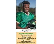 Huguenot High School junior Merlys Manuel looks forward to getting his Virginia driver’s license later this school year. Already as quarterback, he has been handed the keys to the Falcons’ offense.