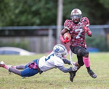Virginia Union University believes in sharing its top athletes. Chazton McKenzie draws rave reviews in both track spikes and football cleats for the Panthers.