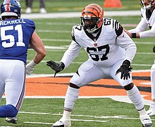 Cincinnati Bengals offensive right guard Quinton Spain - No. 67 - will become the latest local athlete to perform on football’s grandest stage.