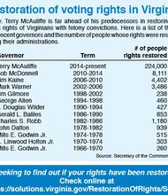 Gov. McAuliffe signs the sweeping order restoring felons’ voting rights Friday as supporters watch. Among them, from left: former Secretary of the Commonwealth Levar Stoney, … Published on April 29, 2016 |