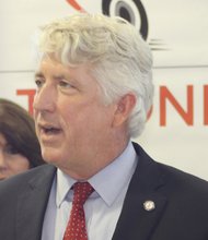 Joseph D. “Joe” Morrissey, left, wearing an ankle bracelet on daytime release from jail, is given the cold shoulder by fellow politicians on his first … Published on January 1, 2016 |