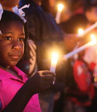 Two-year-old Olivia Cheek, left, and Aliyah Cheek, 5, are dazzled by the lights at the James Center Downtown during the 30th annual Grand Illumination last … Published on December 12, 2014 |